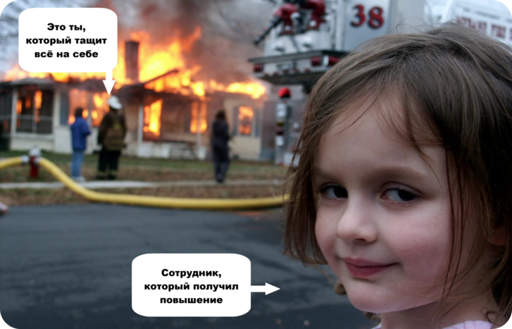 «Слушай, у нас же тут чистый мем. Пашет один, премию дают другому. Ты это вообще